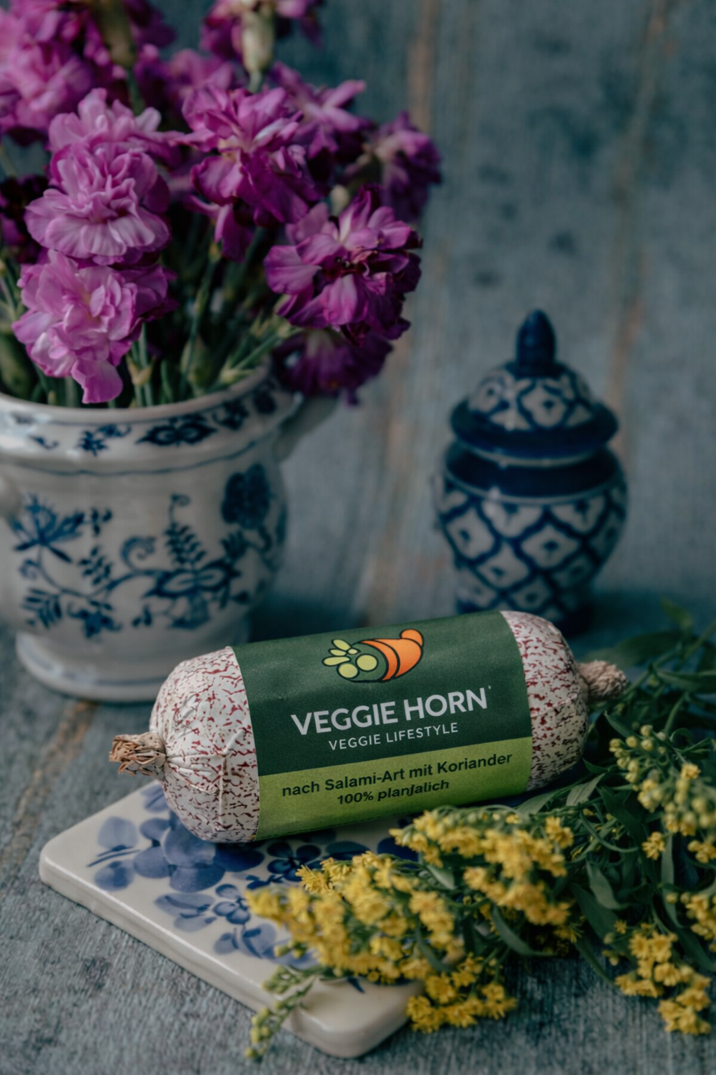 Mild-würzige vegane Salami-Alternative mit feiner Rauchnote und Koriander. Proteinreich und vielseitig verwendbar.